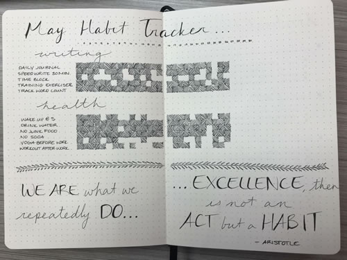 Waking up early, journaling every day, tracking my daily word count, staying away from junk food …